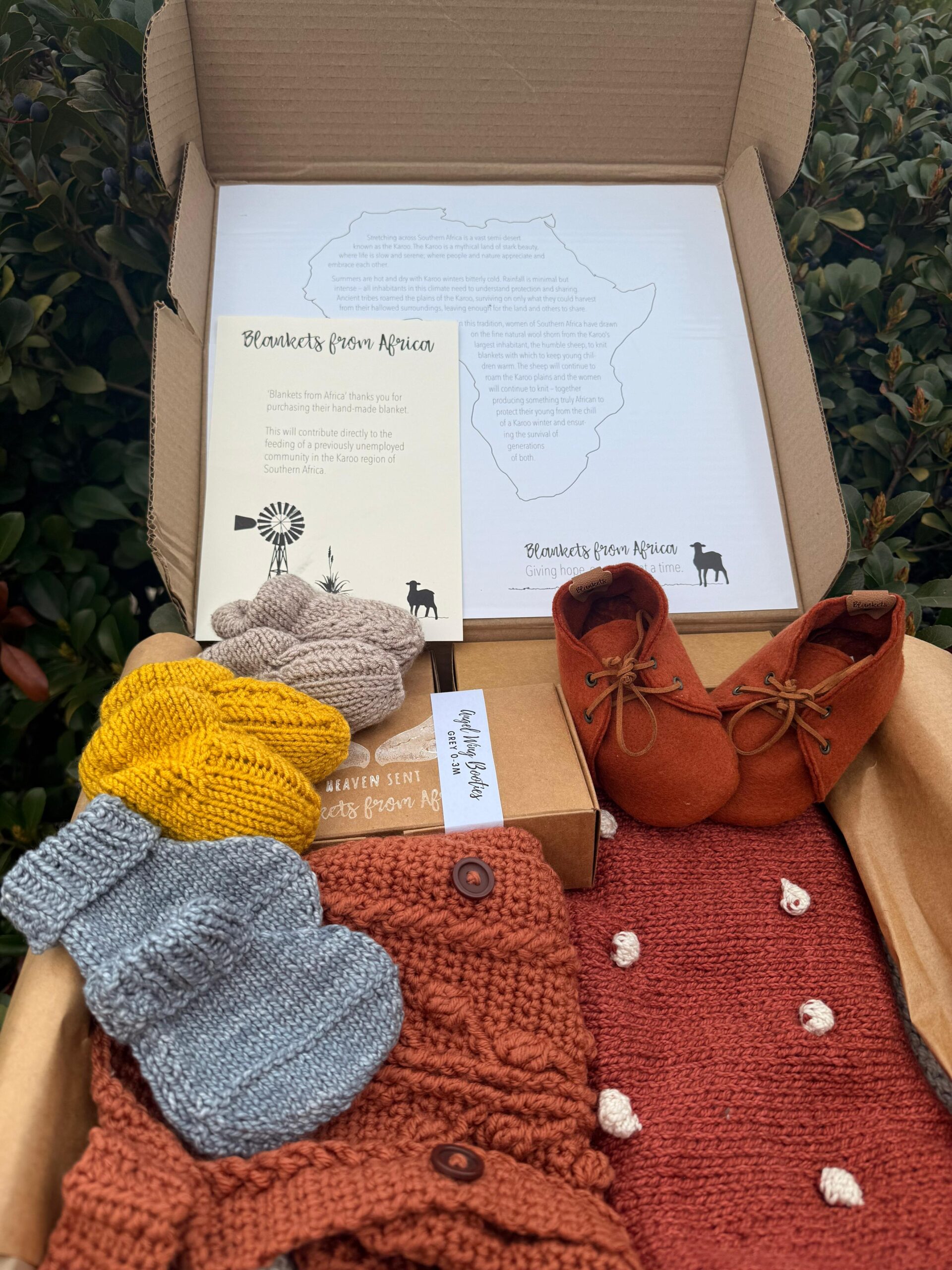 ‘Blankets from Africa’ was born out of a road-trip through the Karoo, part of the heartland of South Africa, where the level of unemployment, especially among the women, had reached alarming levels, with little apparent prospect of improvement. It provides jobs by allowing women to create beautiful products with the wool that already surrounds them.