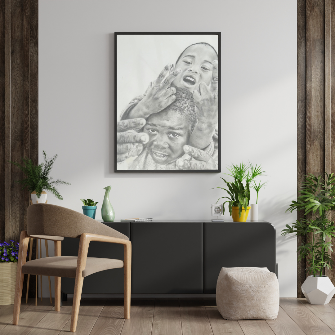 “The kids was one of my very first pieces I made for a gallery back in 2017. This piece resonates with me not only because of the personal experience I had with these kids but because it tells us a story of how kids grow up in our townships.” – Lizl Bode